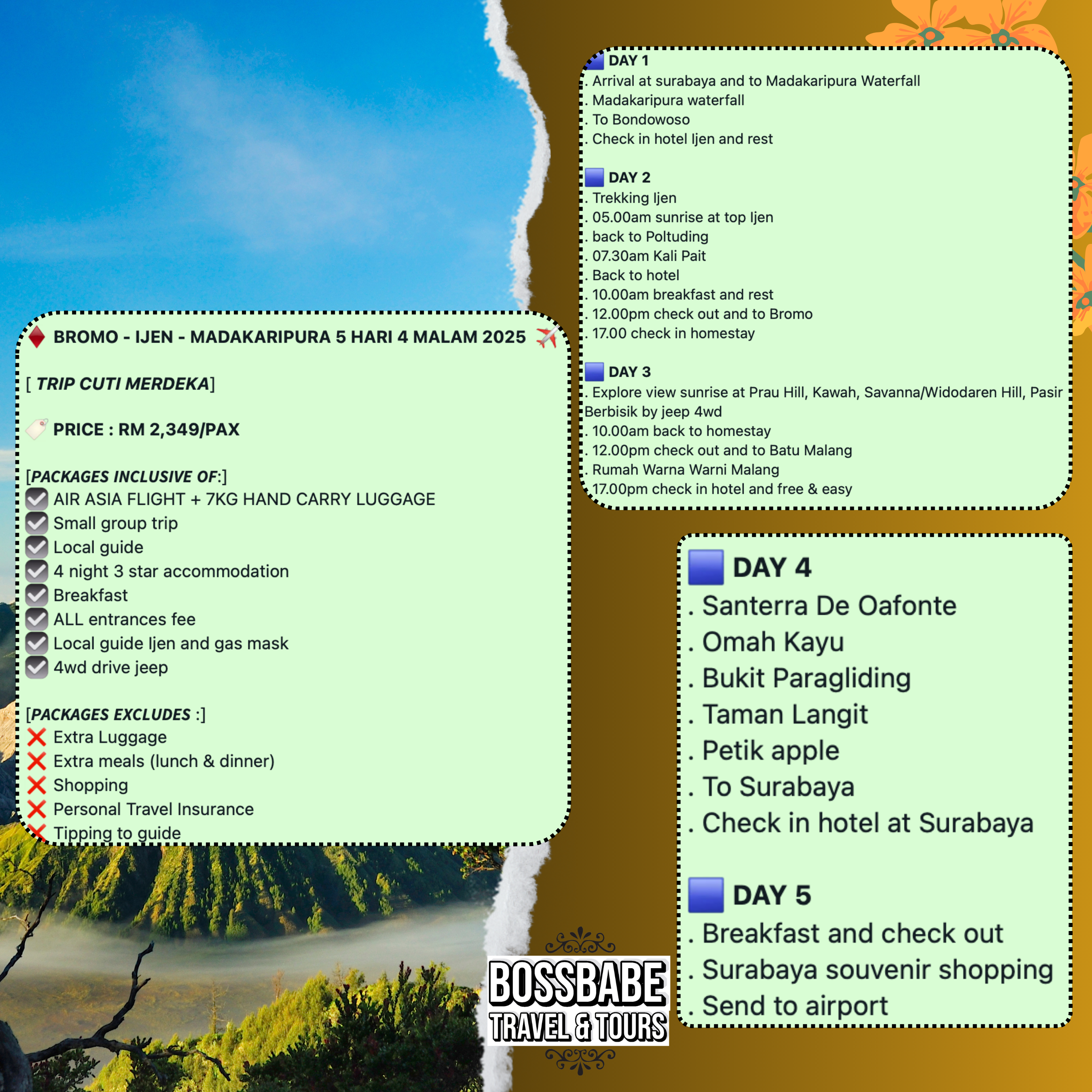 BROMO SAFARI 4D3N PACKAGE ITINERARY